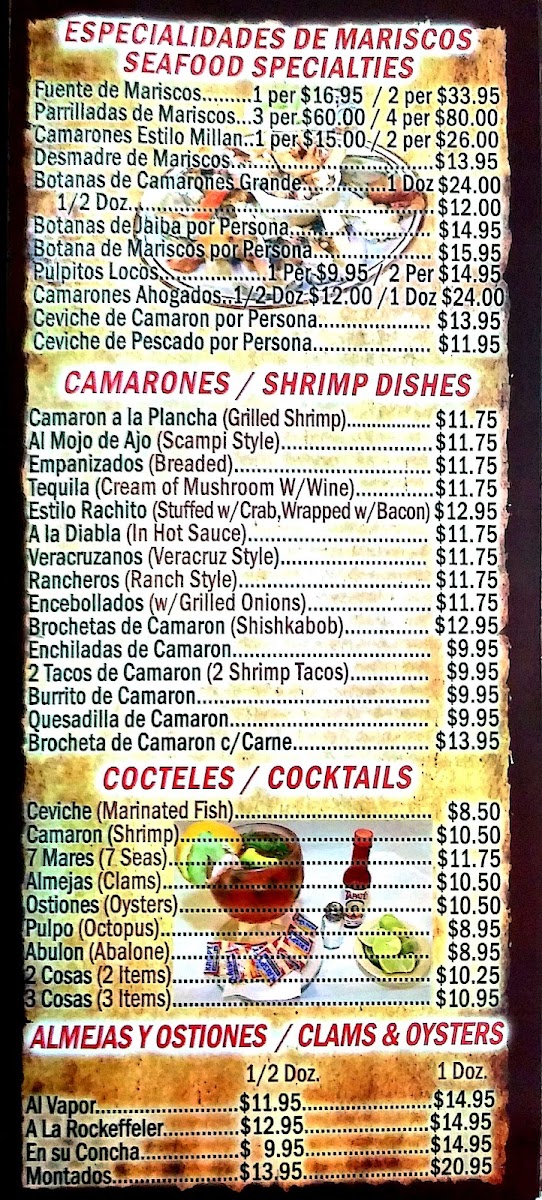 Nuestra Especialidad De Mariscos Our Sea Food Specialities